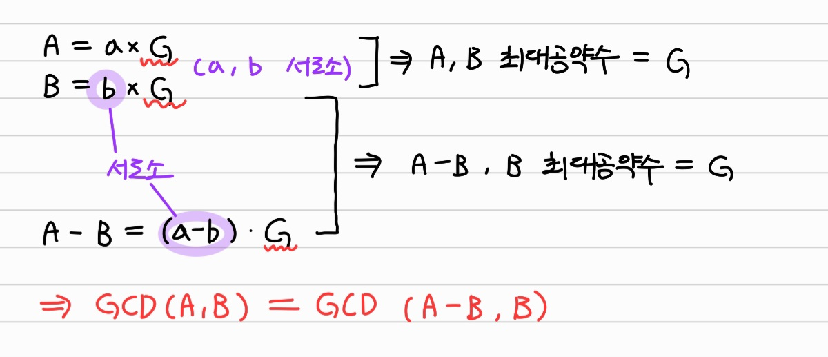 📝 A,B의 최대공약수 = A-B, B의 최대공약수