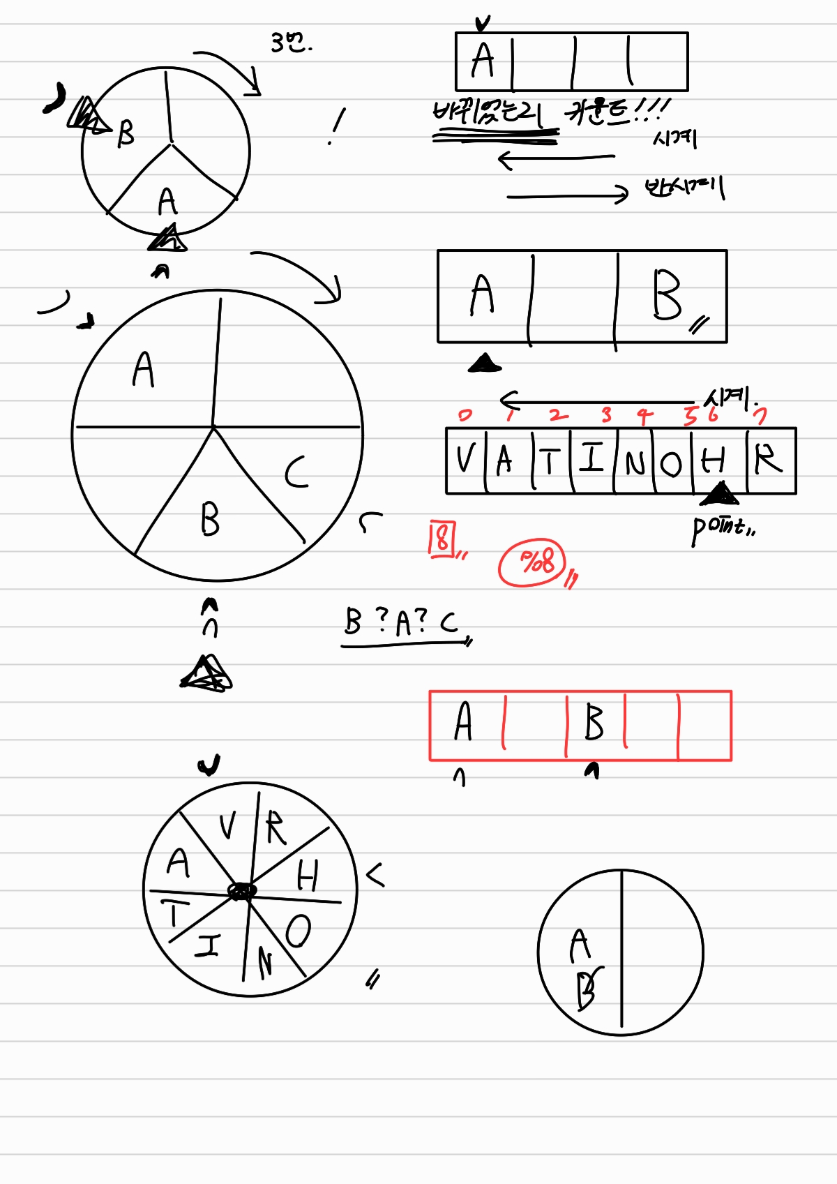 예를 들어 3칸 짜리 바퀴인데, A가 한 칸에 채워져있다.