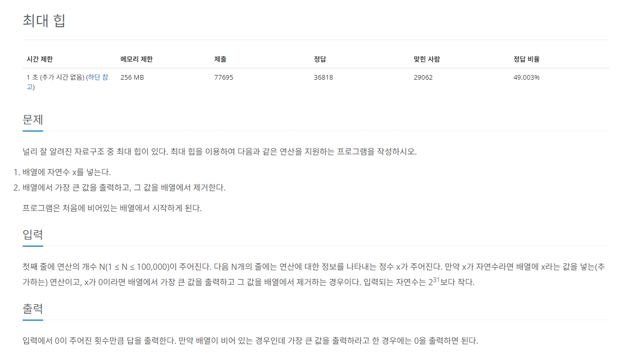 📝 예시 문제로 알아보는 최대 힙의 구현