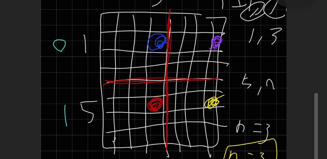 이게 사실 나도 바로 뽑아낸 건 아니고, 한참 고민해도 길이 안보여서.. 바킹독 스승님이 알려주신 힌트 (각 사분면 동일지점들의 위치 규칙) 을 보고 n=3일때, n=2일때 하나하나 그려보고서 고민하고 얻어낸 식이닿ㅎ.. 힌트도 안보고 혼자 풀었다면 진지하게 n시간 걸렸을듯.